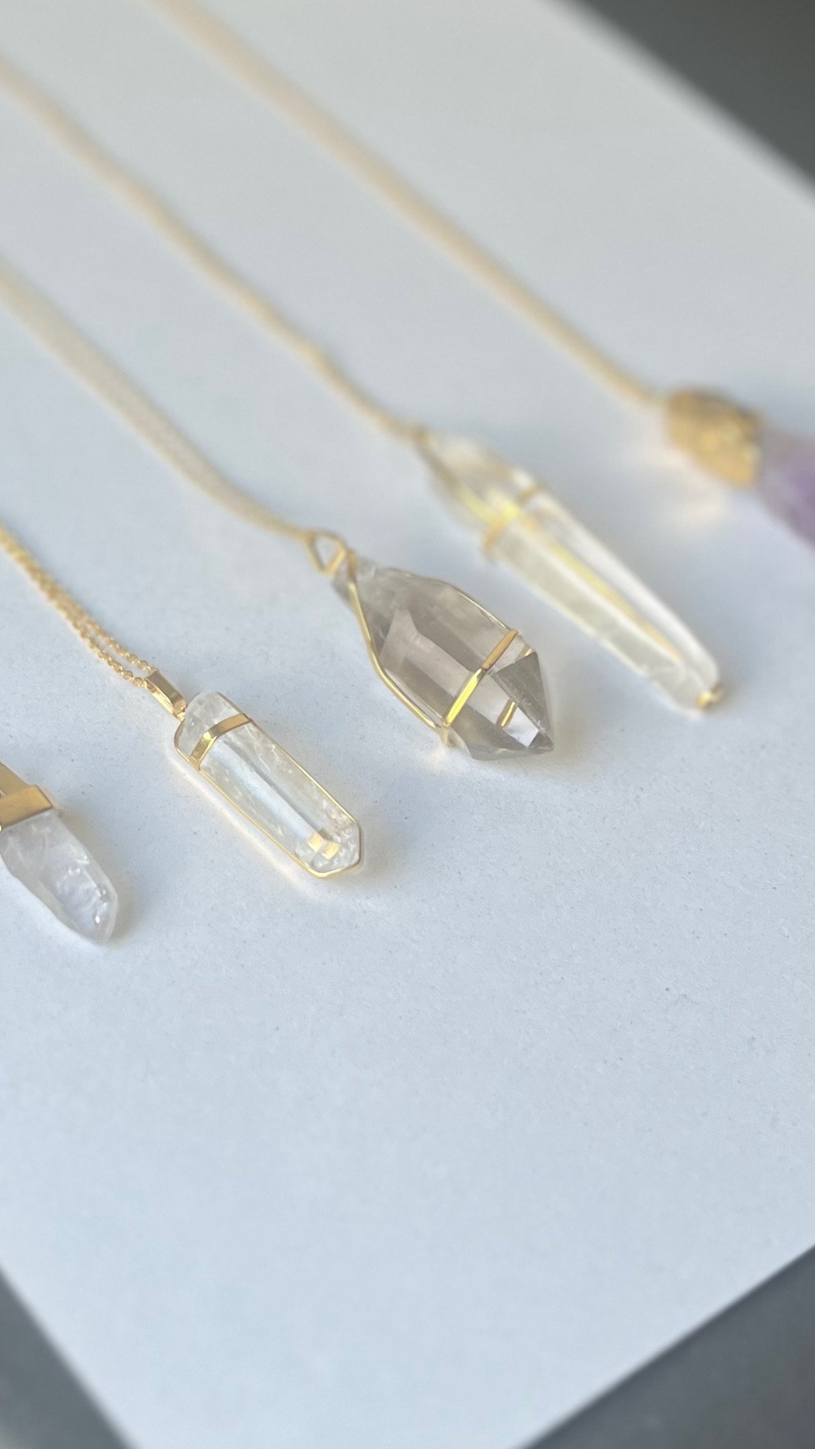Piezas creadas con minerales elegidos uno a uno al detalle para que a través de sus propiedades sientas cómo armoniza tu energía y te acompañen no sólo con su belleza sino con su vibración y sabiduría ancestral. Cada una va engarzada en plata y oro para que la esencia de estos metales nobles sea un añadido y contribuya a la transmisión de la energía de los minerales.