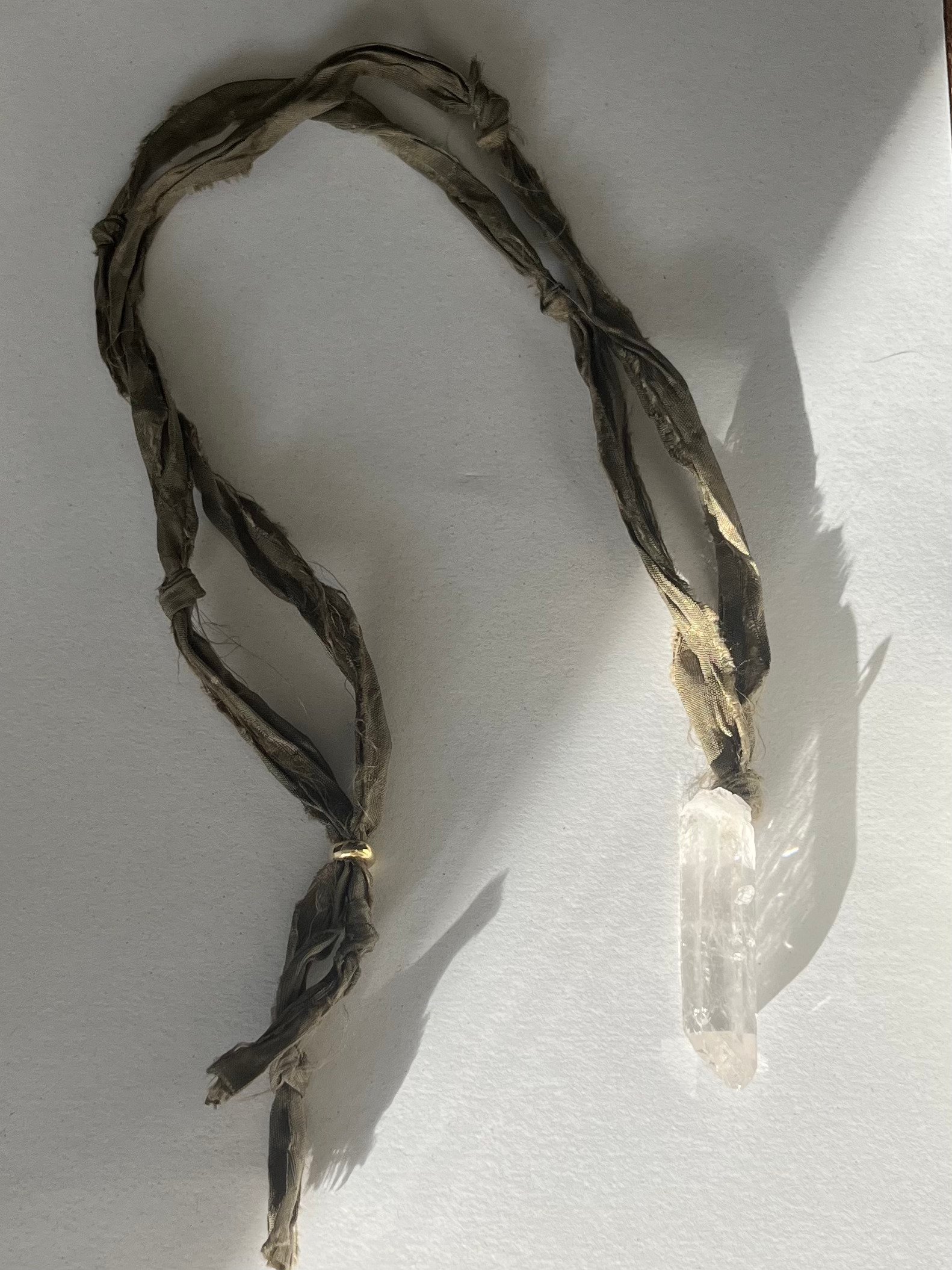 Colgante de Cuarzo con seda de largura regulable y cierre de plata y baño de oro.