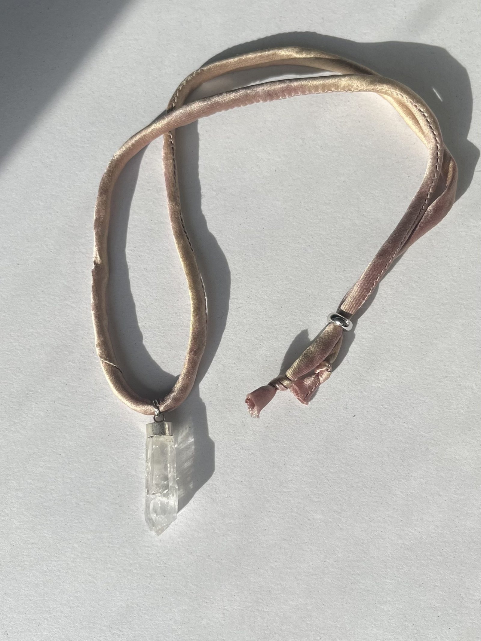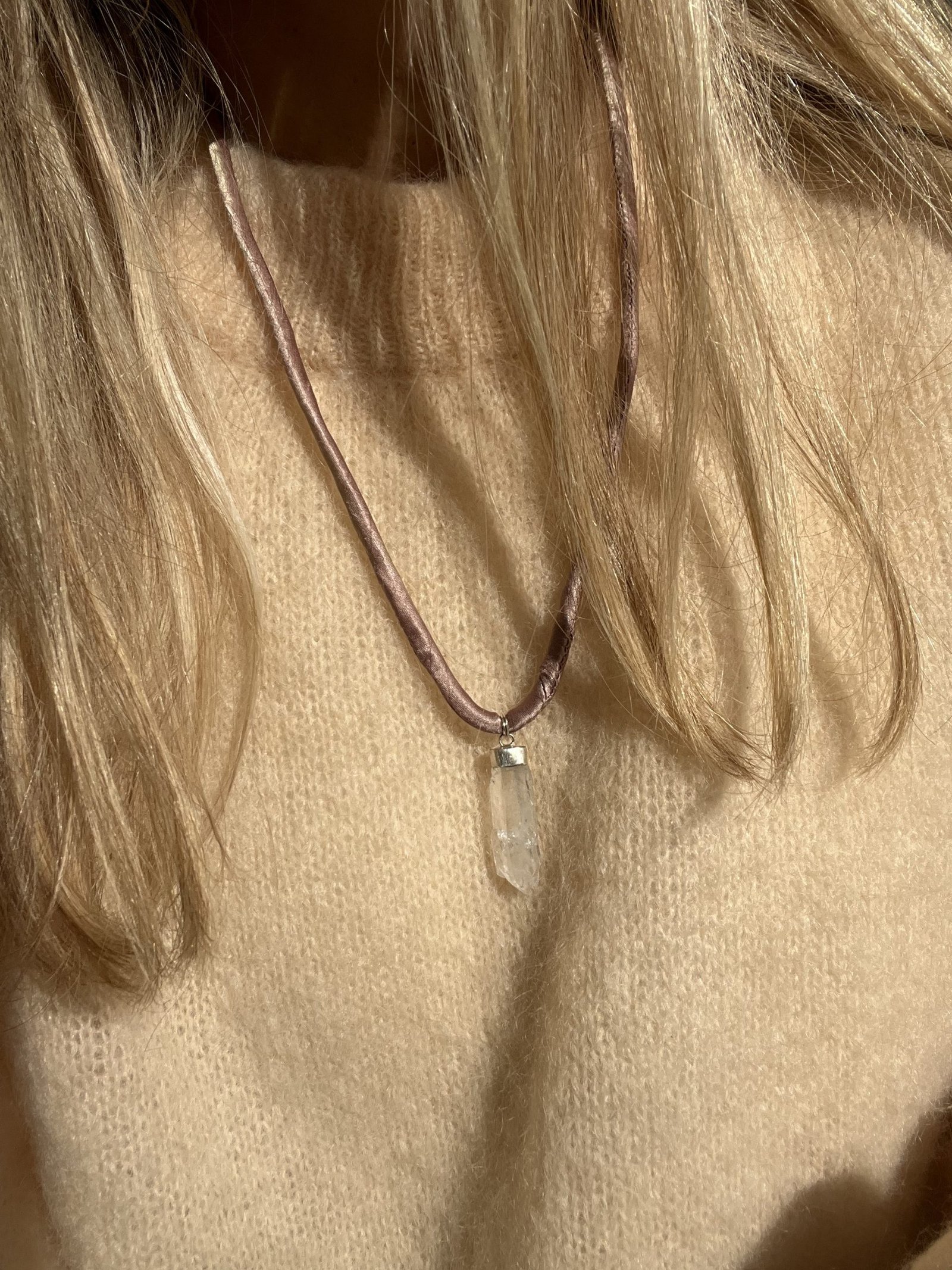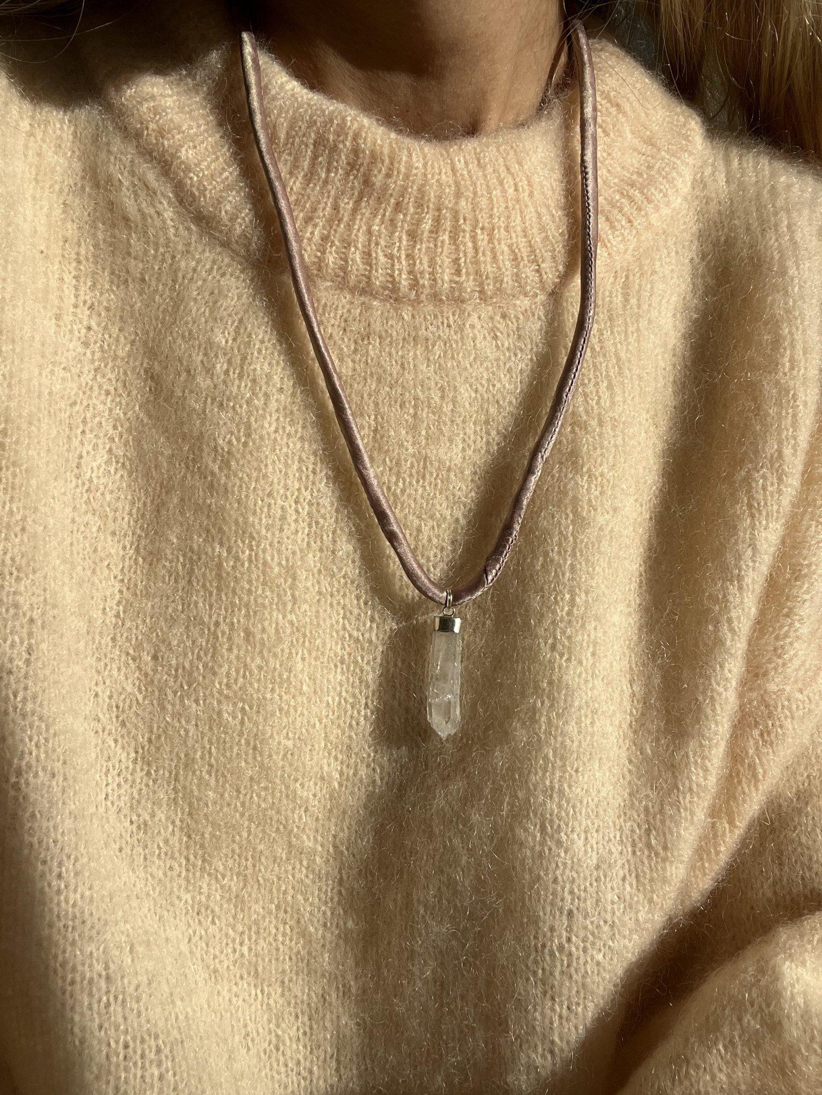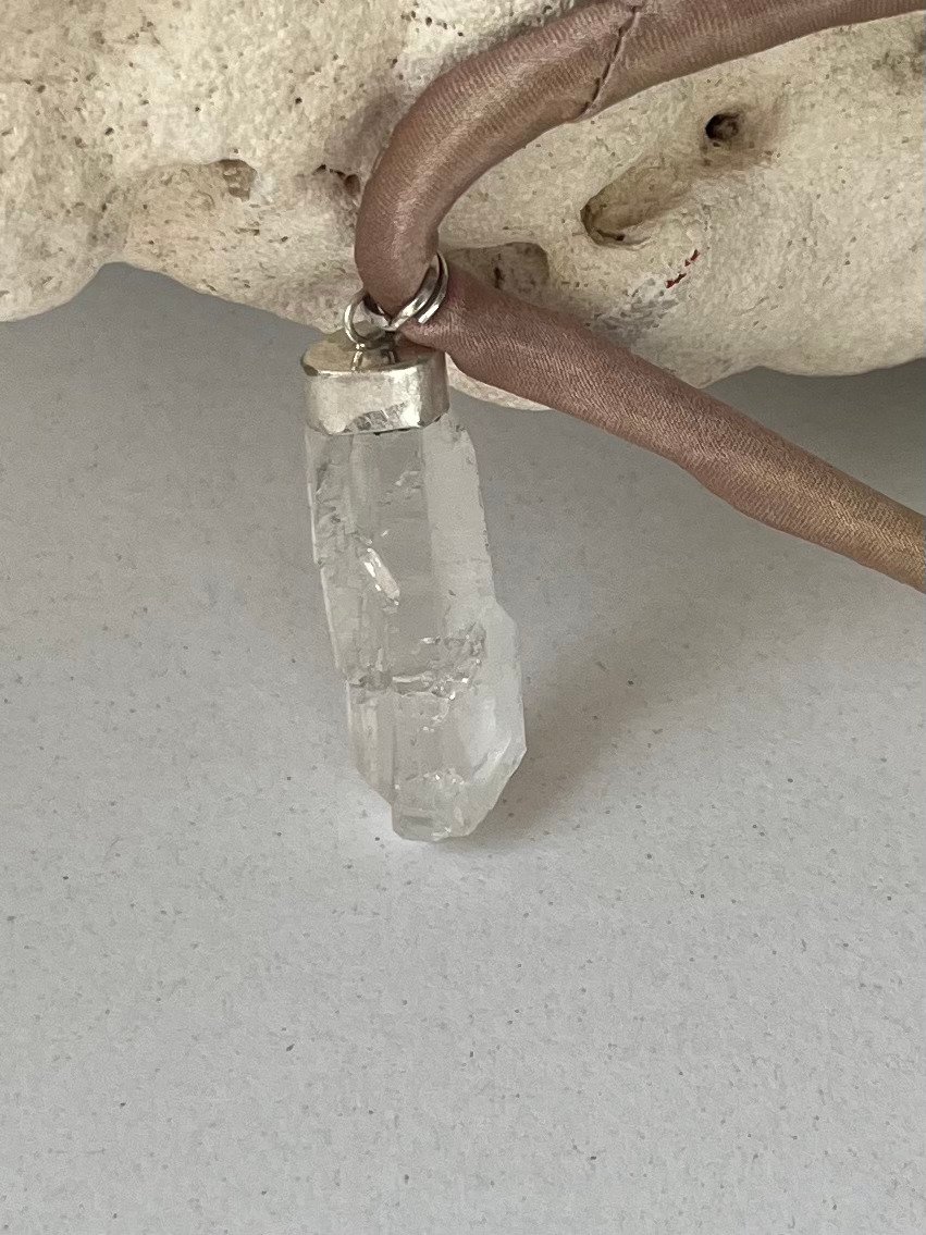 Colgante de Cuarzo Faden con cordón de seda y cierre de plata de largura regulable