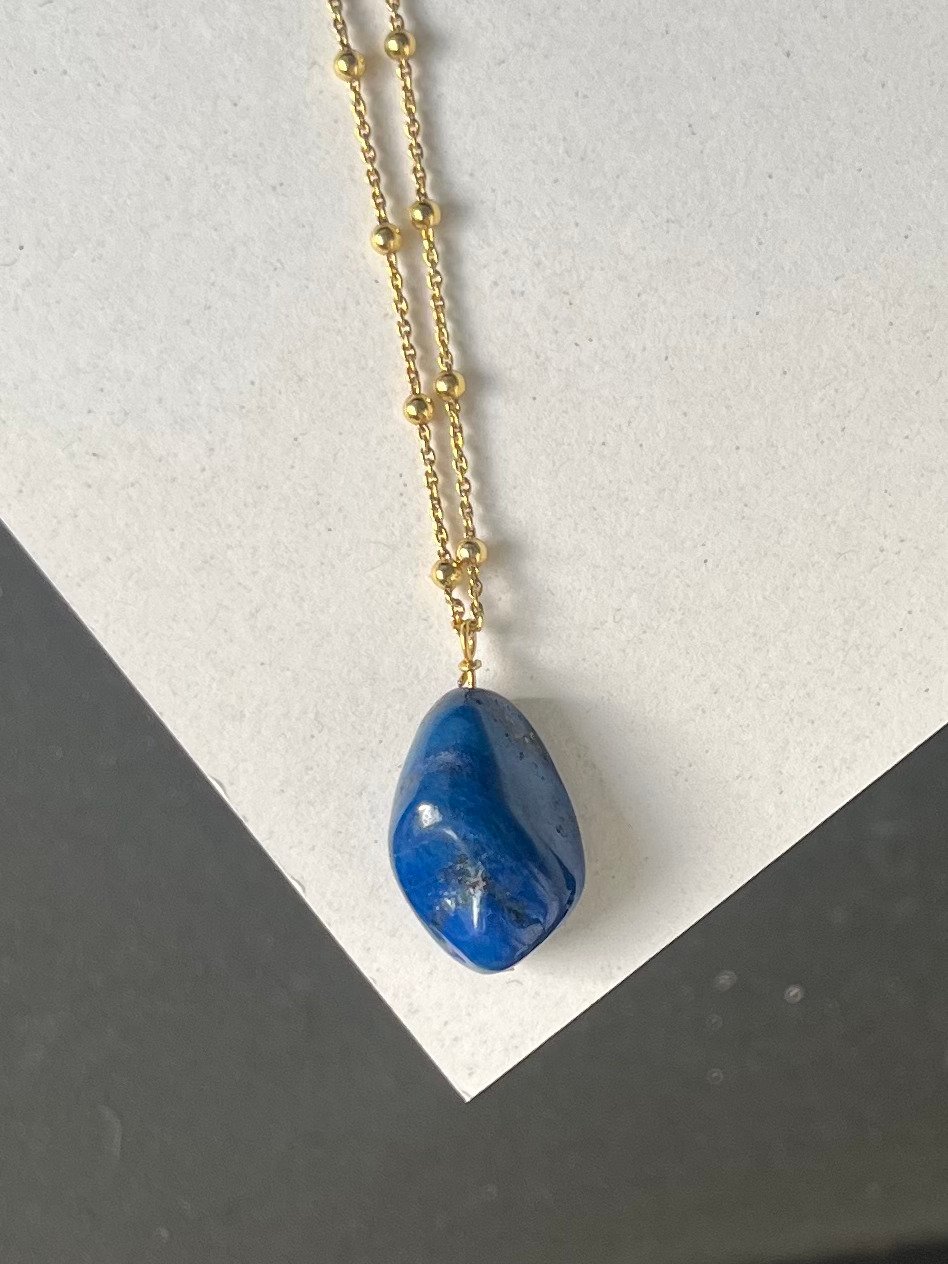Colgante de Lapislázuli con cadena de plata y baño de oro de 50 cm.